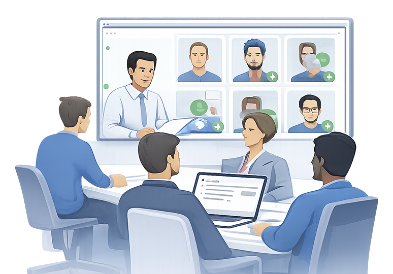 - ✓6–10 people on a call.