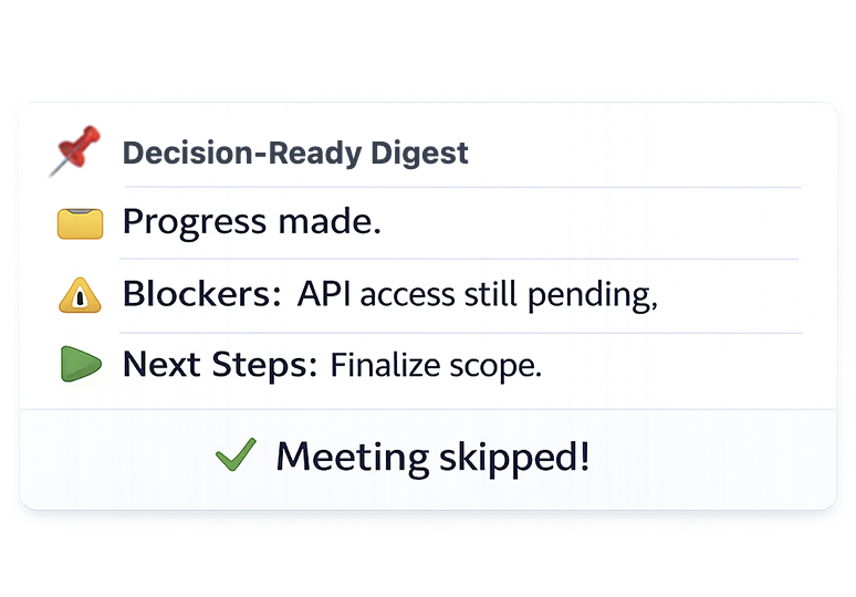 Send one prompt → get decision-ready digest → skip the meeting.